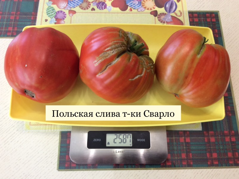 Огромная урожайность красивых плодов сливовидно- сердцевидной формы