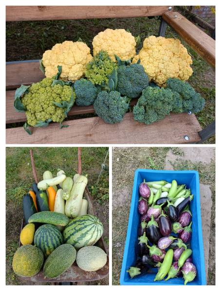 Леночка, прекрасные моменты заслуженной гордости плодами своих трудов. Всё получилось! Арбузы и дыни у тебя очень даже солидных размеров для наших условий. :good2:  Будем ждать отчета о самых вкусных. Баклажаны, помидоры... сколько цветовых и вкусовых оттенков!