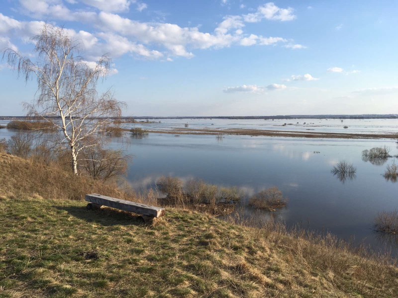 Вода перестала прибывать в озере и даже, кажется, начала чуть спадать. Как же вольготно взгляду при виде этой зеркальной покойной необъятности... Всех, утомлённых заботами и трудами, приглашаю на брёвнышко на нашем бережке