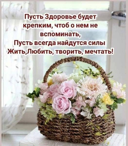Будь счастлива, живи в радости и здравии ! Пусть огорчения и неприятности проходят стороной . Желаю жизненных сил и негасимой искорки на все твои увлечения и задумки . Всего, всего тебе хорошего !!!