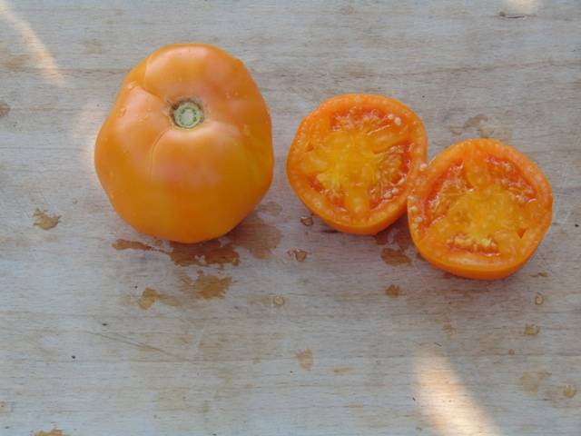 Индетерминантный, 1,8м, среднеспелый. Плоды терракотово- коричневые, в основном плоскоокруглые, с приподнятыми плечиками. Но бывают закрученные как крендель или в виде боксерской перчатки. Очень вкусные, сладкие, терпкие, ароматные, до 500 г и выше