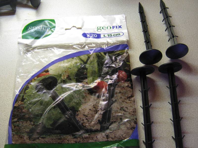 Света, может посмотришь где-нибудь гвозди пластмассовые, очень удобно ткань пришпиливать к земле