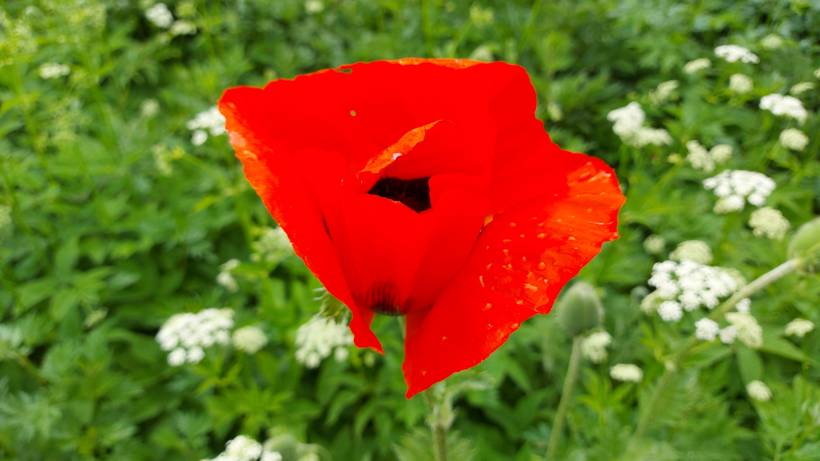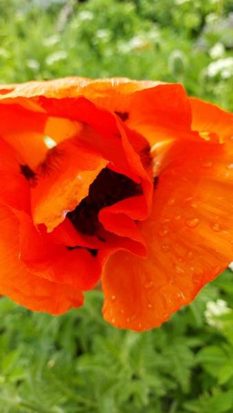 Большая клумба-цветник уже заросла полынью и снытью. И среди этой травищи расцветают оранжевые маки. Надо срочно полоть и перекапывать.