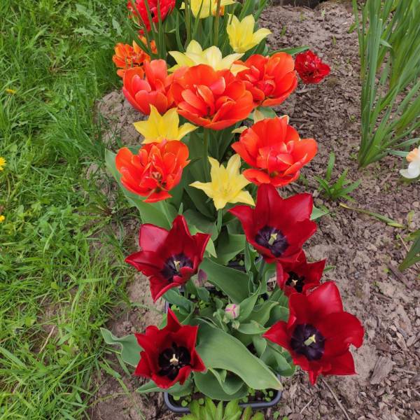 Вот так в 2018 г цвели тюльпаны, какие покупала у Лены в 2017 году, в грядке с клубникой, потом на этом месте все лето стояли кашпо с петуниями