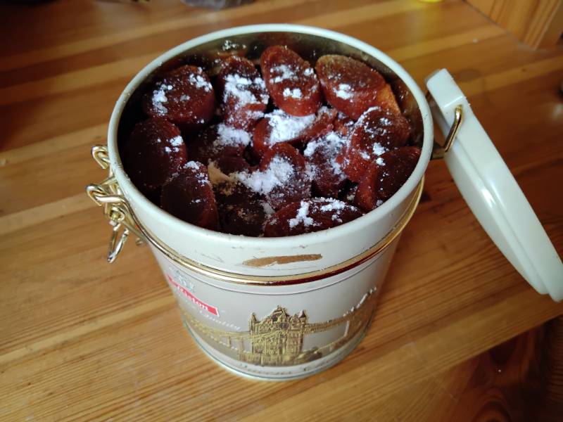 По нарезке могу сказать , что бочка маленькие лучше отправлять в пастилу, а то они маленькие и корявенькие получаются. Но это просто взгляд на эстетику. С двух поддонов получилось 2/3 поллитрового контейнера.
