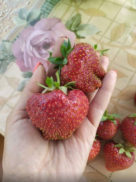 У вас очень крупная, у меня ягоды меньше,но кустики ещё были небольшие. Немного смущает на ваших фото выпирающие семянки и цвет, но возможно это трипс постарался.
