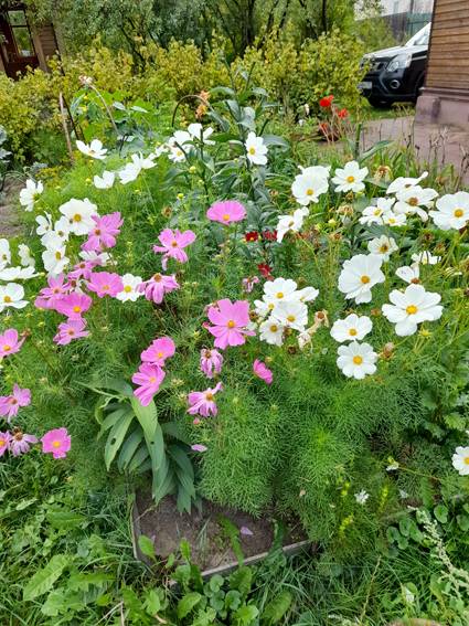 Юля, семян  на космеи очень много, но я не собирала. Она не для нашего климата. Постоянно клонилась, падала, привязывала к палкам. И ещё меня раздражали отцветающие чашечки, ходила ,чикала:girl_cray: их, но их очень много. И ,вообще, я  стала любить цветы, которым нужен мини уход. Вот колокольчики у меня, милое дело, сам сеется , стоят, как солдатики. У меня их 3 вида. Сорт одного знаю только.Из семян сама вырастила. Пионы нравятся, покормила, сейчас уже бутоны пуговки,  гортензии тоже проблем не доставляют. А однолетние это петуньи для кашпо на ножках.Сальвия в этом году из семян рассада. Ещё Дихондра зачем-то.Обязательно Мирабилис посею. Ну его прямо на клумбу.