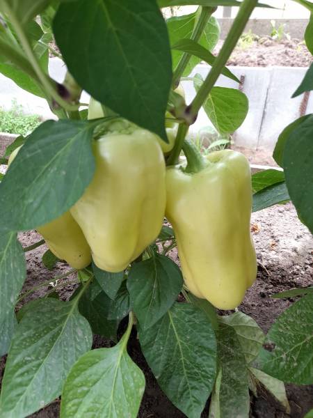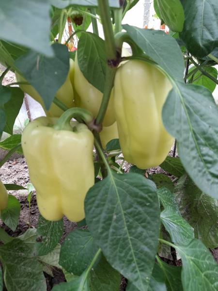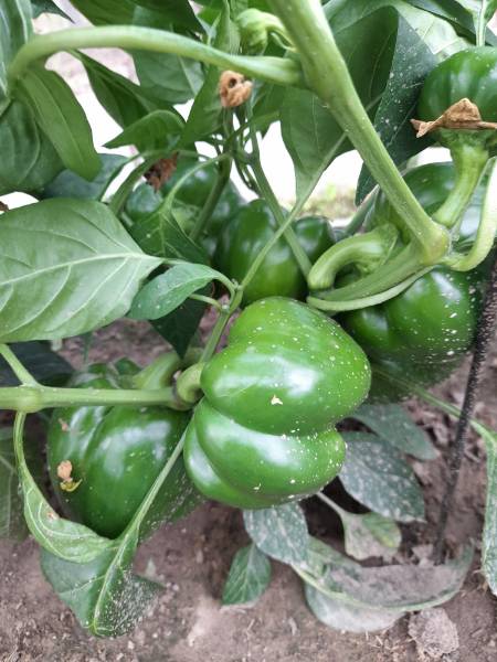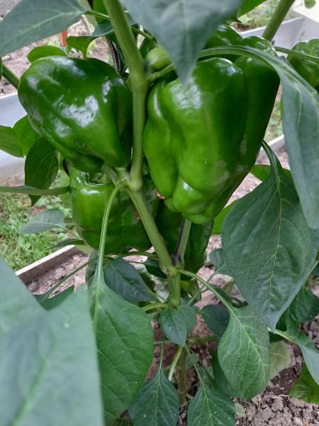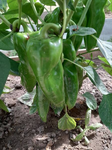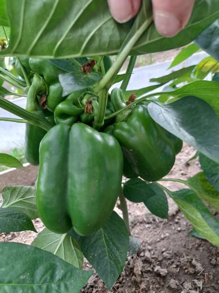На фото кажется, что мало перцев. На самом деле еще выше тоже перцы. В среднем вот таких больших перчин на каждом кусте по 6-8 штук, сейчас еще мелкие начали завязываться.