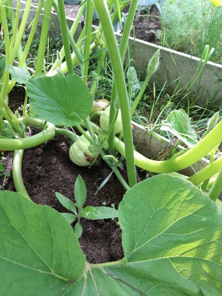 Тыквы в этом году вязать начали поздно, но активно. На больших уже по 5-6 штук
