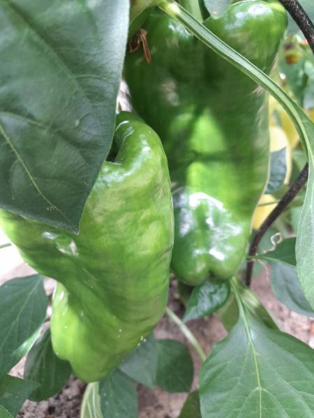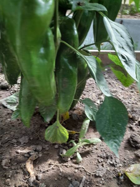 Пыталась сфотографировать перцы. Корячилась, корячилась, пока только 2 куста Диаманта с двух сторон получилось. Тоже все еще зеленые. Не знаешь, как к ним подлезть, чтобы показать урожайность. Ну, в общем перцами я в этом году тоже довольна.