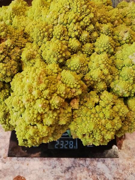 Сняла сегодня капусту Романеско большую-2,3кг.пожарили полкочана,вкус похож больше на цветную,чем на брокколи.вкусная.