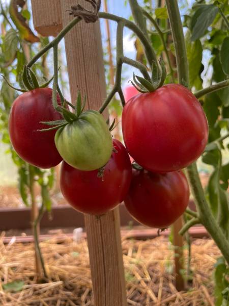 Кино один из самых ранних и уже едим его , плечики чуть синие у него у первых помидорок