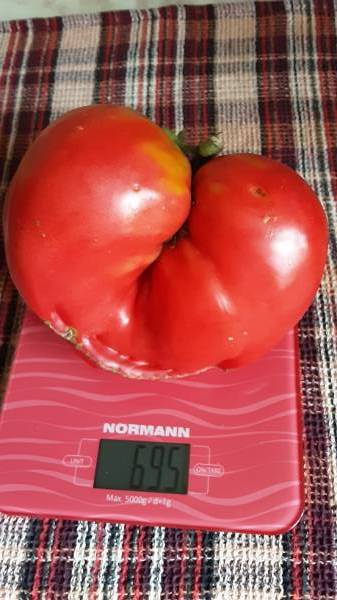 Натуль, ты меня спрашивала про томат Фиолетовая Красавица. Понравился. Мякоть плотная, как я люблю. Единственное, если уж совсем придираться, то можно добавить каплю сладости. Плоды разные. Есть и в форме сердца, есть гребешки. Вес от 200 до 400 грамм. Взвесила этот, небольшой.
