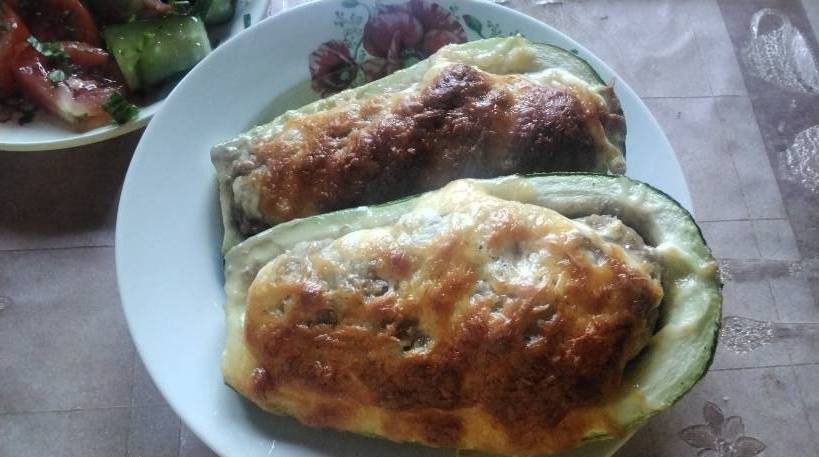 Кабачки начали подрастать ,сняла два небольших  ,Юличка  @Иулитта22из твоих семян и зафаршировала фаршем сверху майонез + сыр ,очень вкусные кабачки :03niam: ,мягонькие ,сочные ,нам с мужем очень понравились