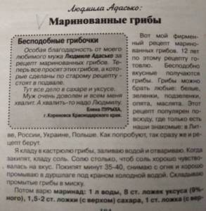 Девочки, тем, кто маринует грибы. При приготовлении грибов надоедает стоять и собирать пену. Нашла рецепт, где этого не надо делать. Рецепт: грибы (у хозяйки белые) нарезать, в кастрюлю и залить водой. После закипания варить 5 минут на средней температуре, не собирая пену. Потом снять с огня и промыть проточной водой. Грибы после этого чистые и не образуют пену при дальнейшей варке. Маринад: на поллитра воды + 0,5 столовой ложки соли и специи: лавровый лист, чёрный перец, душистый перец и 1 гвоздичку. Кладём грибы в маринад и варим в нём 15 минут. Выключаем и добавляем 3 столовые ложки 6% уксуса (у хозяйки яблочный) Разложить по стерилизованным банкам, укутать.
