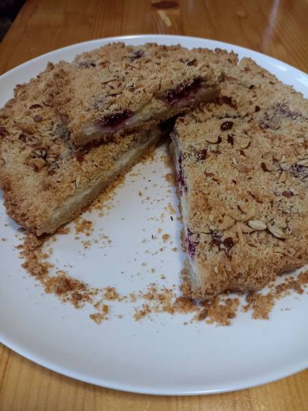 Пирог с черной смородиной и миндальным лепестками. Что было под рукой...