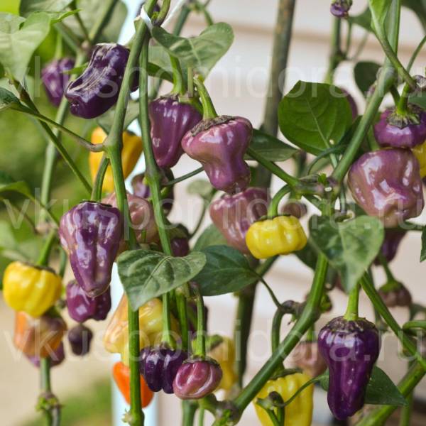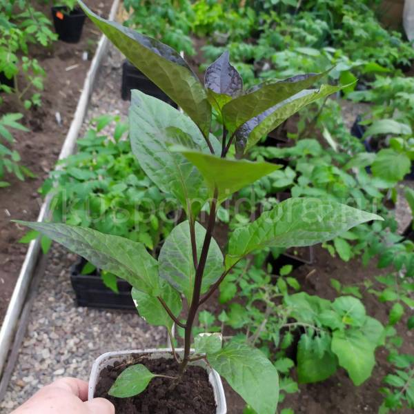 Сорт сильной остроты (200-300тыс. SHU). Высота куста до 90см, раскидистый. Побеги и листья темно-зеленые с плотным фиолетовым напылением. Пума уже в рассаде отличается от других перцев, очень красивая!