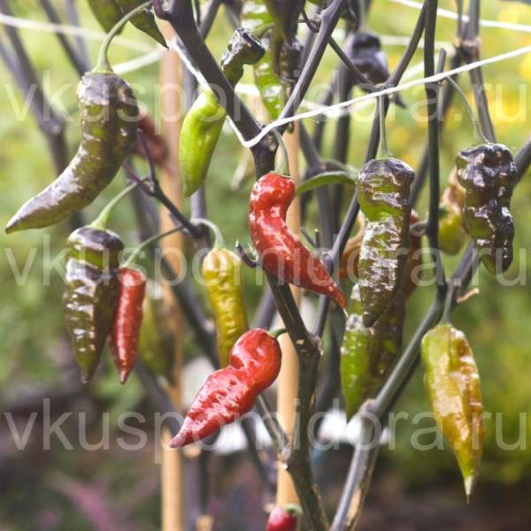 Куст до 50см, острота неизвестна, но не сильная. По нашим ощущениям 2-3тыс. SHU