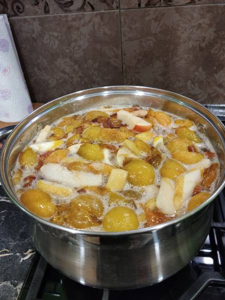 Ой, спасибо! Вот это я посмеялась:04laugh:, ночь, тишина, а я сижу ржу!:mosking:У нас тоже слива жёлтая есть, тоже высокая, теперь я тоже на неё гавкать буду, я то думала, что она у меня за грецким орехом тянется, орех у меня самый высокий, метров 6-7,  а там вона чего-Михалыч, они наверное все сливы жёлтые высокие. Но вкусная, крупная, вся ровненькая, как яичко. Лезть на дерево за сливой бесполезно-высоко. Мы с мужем наловчились её трясти. Он трясёт, я снизу подбираю. Обычно тазик и ведерко натрясаем. И сразу в переработку. А по другому никак, жди, пока она там нападает, да она и не лежит совсем, упала и сразу гнить начинает. Фото только такое. Варенье делала недавно с грушей и лимоном.