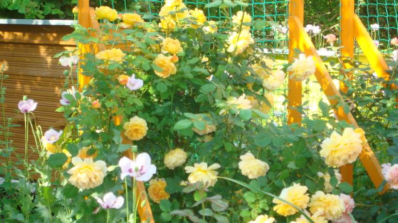 И с розами расстроена... Чайно-гибридные, они посажены рядами перед крыльцом, вырезала под ноль, побеги снизу чёрные.