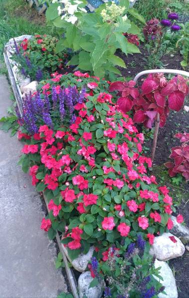 Красивый бордюрчик! А синенькое в бальзаминах это вероника? Или кто другой?
