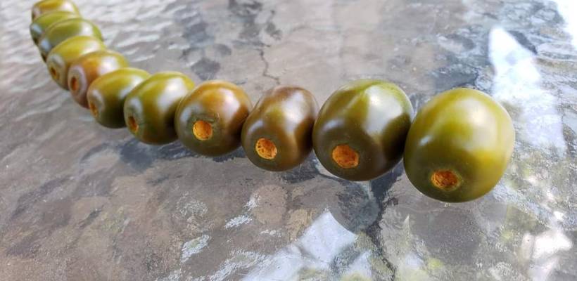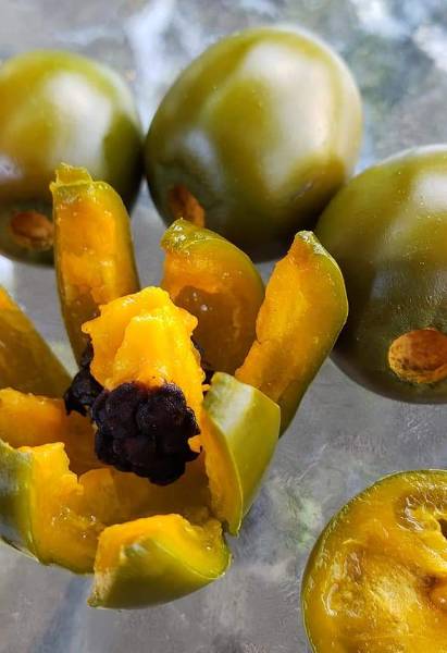 Не говори! У него ещё и куст очень красивый. Хоть в клумбу сажай. И не болеет ничем. Размером с крупную оливку. Очень трудно определить спелость. Только на ощупь.  Зато потом срываешь,  сверху цвет хаки, а на месте плодоножки оранжевая дырочка. Как огонёк.