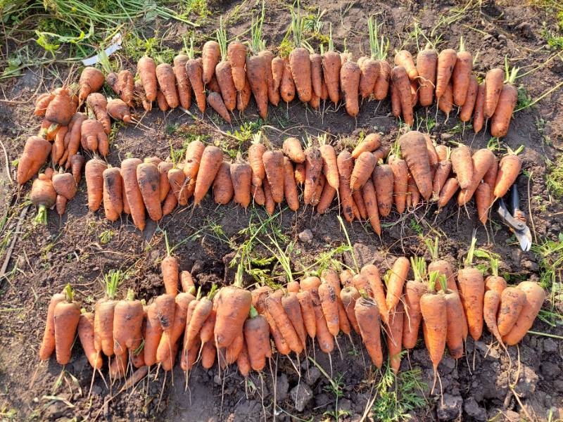 Смотрела ролики в ютубе по морковке, Боливар очень красивая , яркая морковь. Давай наберём её. Форма очень хорошая, да и у фермеров, как я поняла, она пользуется популярностью.