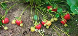 Фейт очень хороший поздний сорт. Так получилось, что из зимы три розетки оказались под лапник ом пихты, заметила поздно. Убрала лапник, розетки выпрели. Но летом отросли заново, поэтому для меня это отличный сорт, и ягода крупная, сладкая, транспортабельная!