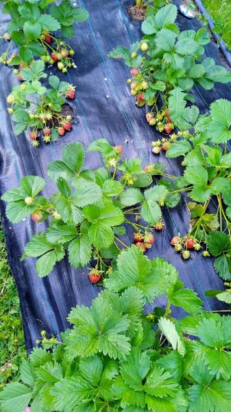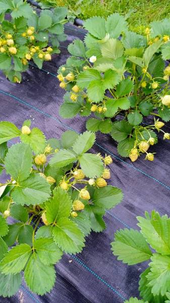 Пока приходится приподнимать ткань, чтобы пройтись газонокосилкой. В этом году ткань буду и в междурядья класть.