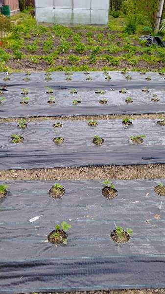 Кому как больше нравится. Мне очень понравилось сажать с агротканью, а кто-то хвалит укрытие соломой.