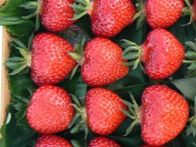 Средний размер плодов 19-20г. Ягоды сердцевидные, ярко-красные, блестящие и привлекательные. Плотность хорошая, но сорт довольно мягок и более пригоден для свежего рынка, прямых продаж и домашнего выращивания. В процессе сбора возможен отрыв ягоды без чашелистика.