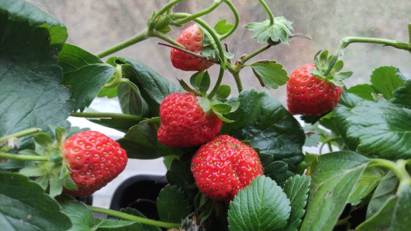 А я себе домой взяла несколько горшков с клубникой Ания. Думала саженцы попробовать сделать на весну. Усов нет,вот ягод немного даёт. Ароматные, но кислые) солнца нет и перепада температур день/ночь.
