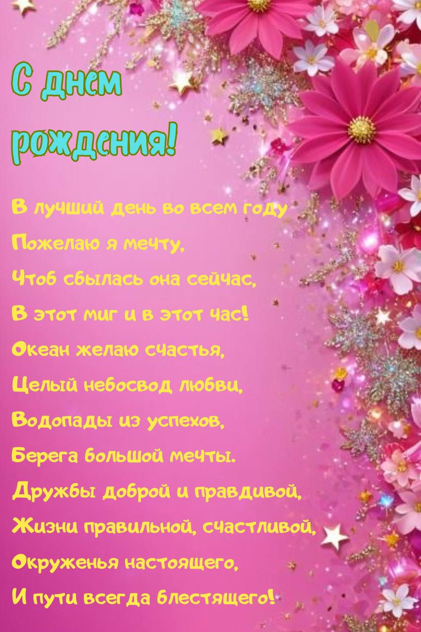 Поздравляю с прекрасным юбилеем — 75-летием! Эта дата достойна уважения. Ведь за эти годы приобретен огромный багаж мудрости, сделано немало добрых дел. Желаю Вам здоровья и бодрости. Любите жизнь и радуйтесь ей, будьте активны и позитивны — в этом залог житейского счастья и душевного спокойствия. И пусть станут Вашим девизом слова известной песни: «Нам года — не беда, коль душа молода». Поздравляю!