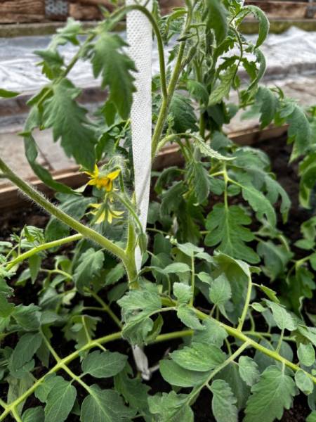 Высадила в теплицу еще три кустика томатов посева 15 марта: