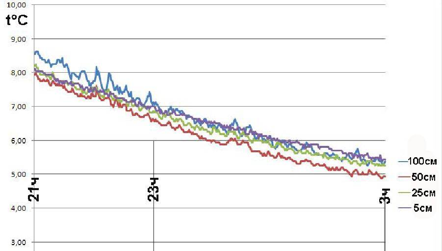 Главное же отличие от предыдущей ночи что на высоте 5см температура к ночи становится чуть выше чем на уровне 100см , вчера такого не наблюдалось