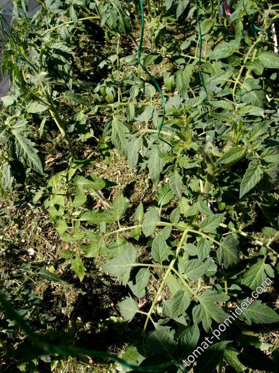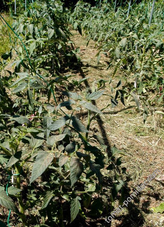 В итоге – подвязала ВСЕ томаты, но тех, что подвязывала и пасынковала в прошлые выходные – нужно опять подвязывать  - стремительно растут и вновь обрастают  :-  Но  всё-равно они радует – в грунте им хорошо, не то что в стаканчиках, в квартире.  Фоткала сорта мало, потому что все томаты ПОКА кажутся одинаковыми  :D