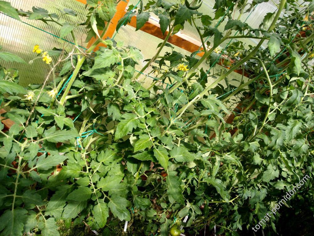 В твоей теплице заросли,как в моей, один в один. Соседка, которая открывает мне теплицу, испереживалась, обстреги, говорит листья, убери всё лишнее.  :D