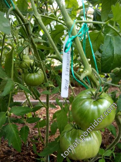 Свет!  Нету у меня ничего красного.  Обратная сторона бело-зеленая, если помидорка в тени.  Но в основном весь плод синий  ???  Я каталог смотрела - у меня не такие плоды, у меня сине-неправильные  :- :D.  Уже одна помидорка чуть мягкая.  В выходные, пожалуй, сорву ее и разрежу, а то вдруг перерастет.