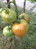 Обратила внимание сегодня на Грин гиганта (решилась я все-таки на зеленые помидорки :D). На первой кисти 5 томатов быстро стали набирать вес, такие уже толстенькие, если еще и вкусные будут, то можно дать второй шанс (на остальных кисточках по 2-3 штуки :( :( :()
