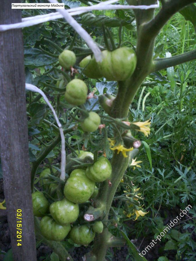 Даа, странный у тебя Монстр, пятнистенький!  Надо ждать — когда поспеют плоды.  У меня еще только-только первая кисть завязалась, а вторая цветет.