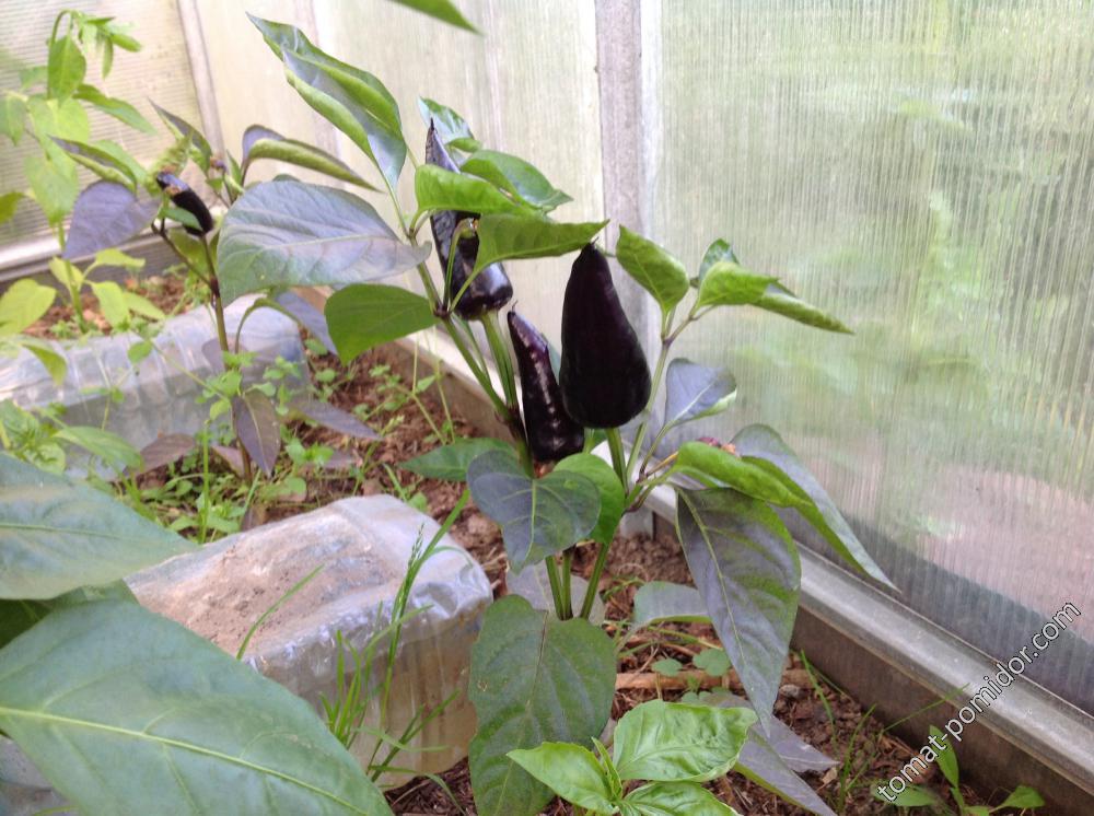 Это сорт Pisto Super Hot, самый красивый был в рассаде - одновременно черные и зеленые листья у кустика.  Только вот тоже не знаю - какими должны быть спелыми плоды, когда их снимать.
