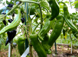 Пока солнца нет - сфоткала, как у меня растут перцы - по три штуки у одной опоры.