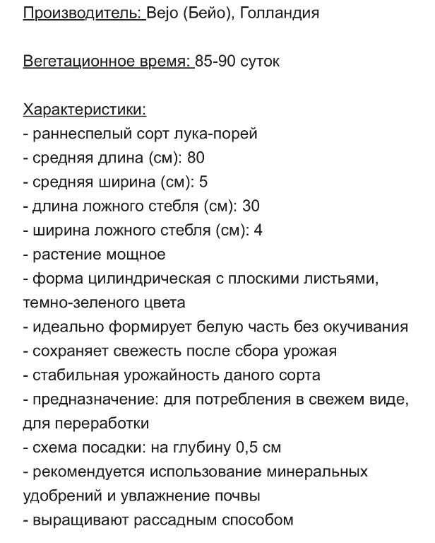 Лук порей ФОРРЕСТ - 150дней. Стебель толстый, длинный. Листья темно-зелёные с мощным восковым налетом. Уст альт и фитофт.   Bejo 100с 64,00 100 100 0