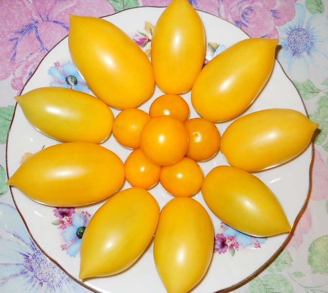 Из желтых томатов у меня только большие Мясной завтрак,Оранжевый русский,Олимпийский огонь и несколько штук Медовой капли.Канарейка и Банановые ноги ещё не спеют