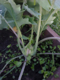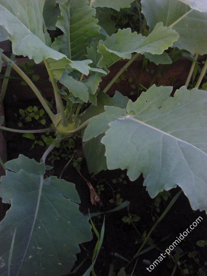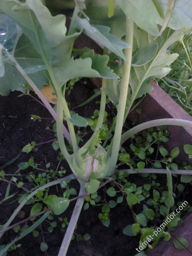 А это ,похоже,брюссельская капуста кольраби...сыпанула горсть семян еще в теплицу в марте,вот выросло 4 штуки  ...