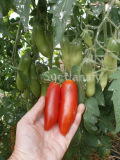 Tomato Arrow (strelka) -Среднеспелый, высокоурожайный сорт с довольно необычными, вытянутой формы плодами. Детерминант, высота 70 см. Плоды - красные, элегантной удлиненной формы (длиной 10-15 см), умеренно толстые, плотные, очень впечатляющий вид не только на растении, но и на блюде. Плоды средним весом 100-150 граммов, идеально подходит для консервирования. Устойчив к болезням.