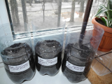 Бутылки 1,5л нашла без "талии", прямые, обрезала примерно 13 сверху. Сеяла примерно по 40-50 семян в каждую.
