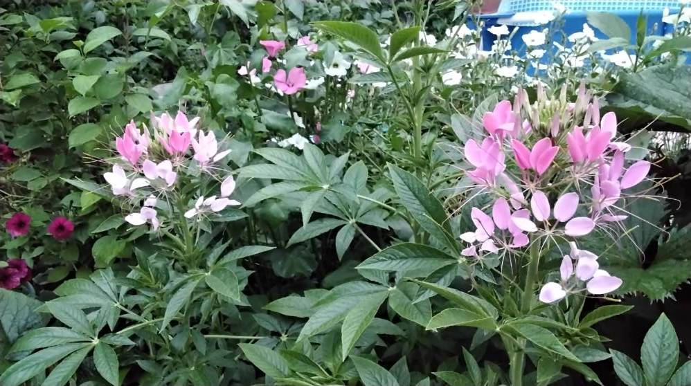 Катарантусы солнышко любят ,но и они от такого палящего ,быстро отцветают , начала распускаться клеома ,вербена