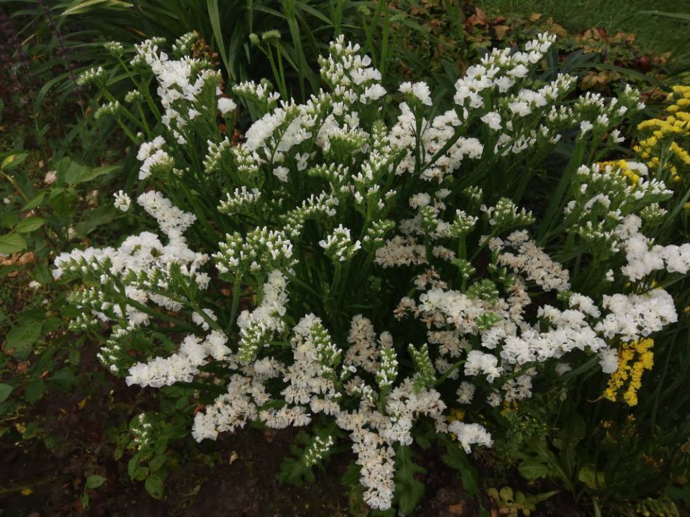 Последнюю статицу, синюю с белым, еле-еле сфоткала, больший объем и всё тут. Куст большой и объем хотелось показать. Он в ножках у Ругельды ,  очень подружились...