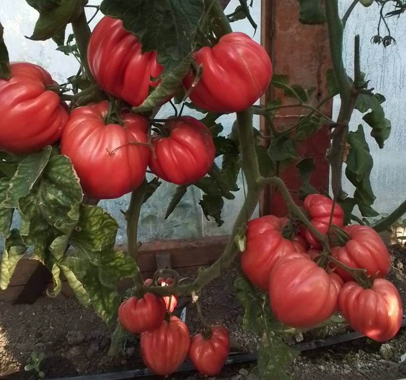 Всем привет. Ириша @Ладошка спасибо тебе за Бифштекс Альби.:08thanks: В теплице он чуть скромнее потому что жировал. А в ог разошёлся. На фото теплица. Не успеваю снимать томаты и на нем сразу 4 кисти окрасились. Сняла их скопом. Вес 5.800 почти.